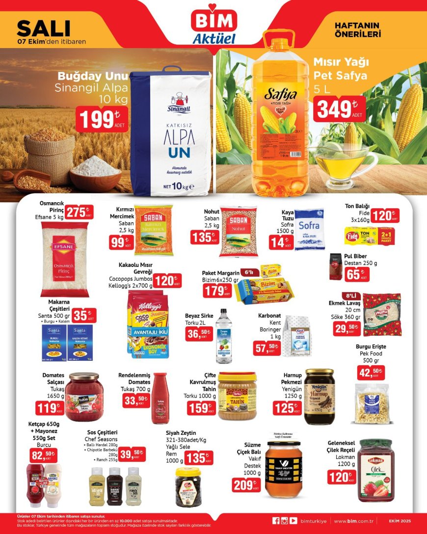 Türkiye’nin en çok tercih edilen market zincirlerinden BİM, 7 Ekim Salı gününden itibaren geçerli olacak yeni aktüel ürünler kataloğunu yayımladı. Bu hafta gıda ve temel ihtiyaç ürünlerinde büyük indirimler sunan BİM, tüketicilere uygun fiyatlı alışveriş imkânı tanıyor. Kampanya, hem mağazalarda hem de online platformda stoklarla sınırlı olarak uygulanacak.