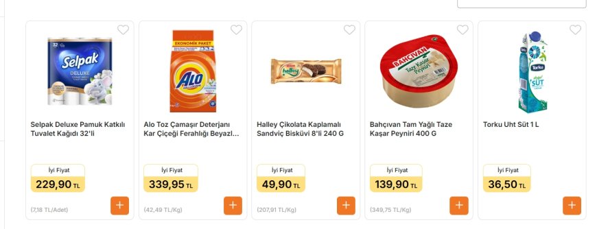 - Torku UHT Süt 1 Litre: 36,50 TL